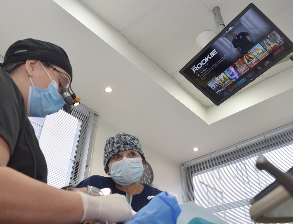 Pensando en tu comodidad, cada una de nuestras clínicas dentales cuenta con pantallas individuales con TV cable, acceso a Netflix, YouTube y otras plataformas, para que puedas relajarte y disfrutar de tu contenido favorito durante la atención.